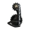 ##absoluteBLACK Premium Oval Shimano 4 Bolt Inner Chainring 9100 The absoluteBLACK Premium Oval Chainring is the perfect addition to your set up to help relieve stress on the knees and deliver a better climbing experience. Compatible with four-bolt Shimano DA9100 and R8000 chainsets; this inner chainring improves pedalling efficiency helping to eliminate the dead spot. Ride with fresher legs for longer; as pedalling consistency is achieved by the unique layout of the series of radiuses around the chainring. Effectively; the largest radius is located where the stroke is at it’s strongest and the smallest radius is positioned in the dead spot. The result is a pedalling motion that feels great and delivers consistently throughout the full revolution. The chance of incurring knee pain is lowered since the stress on the legs is reduced right where you need it; at the dead spot. This inner chainring improves climbing performance and promotes higher pedalling cadence; reducing rider fatigue. ##absoluteBLACK’s size recommendations * 34T inner chainring should be used with 50T outer ring. It has 6.5% ovality. Use a 34T to help with spinning at a higher cadence and hilly terrain. * 36T inner chainring can be used with 50 or 52T outer ring. It has 11.4% ovality. Use a 36T if you?re a strong rider or for rolling terrain. * 38T inner chainring should be used with 52T outer ring. It has 11.4% ovality. Use a 38T if you?re a very strong rider or for flat terrain. * 39T inner chainring should be used with 53T outer ring. It has 11% ovality. Use a 39T if you?re a very strong rider or for flat terrain. ##Please Note * Ramps on big rings are specially configured for combinations: 50/34; 52/36; 52/38; 53/39T * Other configurations will also work; but shifting will be slower and may require more adjustments of front derailleur * Shimano recommends a maximum 16T difference between two chainrings