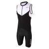 Castelli Elite Womens Speed Suit Developed to enhance performance; the Castelli Elite Womens Speed Suit is their fastest yet; over sprint and Olympic-distance triathlon. It makes use of innovative textiles and has a practically seamless construction to enhance both aerodynamics and hydrodynamics; reducing drag on every leg of the race. Seams that are a necessity are bonded so they lie flat; and woven-in leg grippers create a completely smooth silhouette. A thin saddle liner adds some cushioning for protection in the saddle without it being too bulky when in the water or when running. The upper portion of the suit is engineered from a polyester mesh stretch woven material and has an open back to create the breathability that is essential for the ride and run. A bonded internal 2nd layer is placed in specific areas for modesty. The water-repellent finish on this suit makes it more slippery and consequently faster in the water.